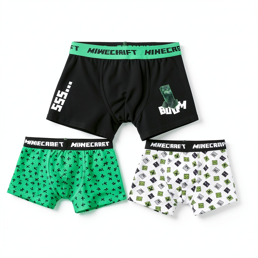 Let your young Minecraft fan enjoy comfort with these 3-pack boys’ boxer briefs, featuring colorful game designs and a soft cotton blend for breathability. Designed with an elastic waistband for freedom of movement, they are perfect for everyday wear, active play, and special occasions. These officially licensed underwear make a great gift for birthdays or holidays.