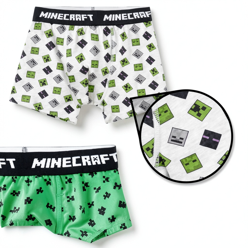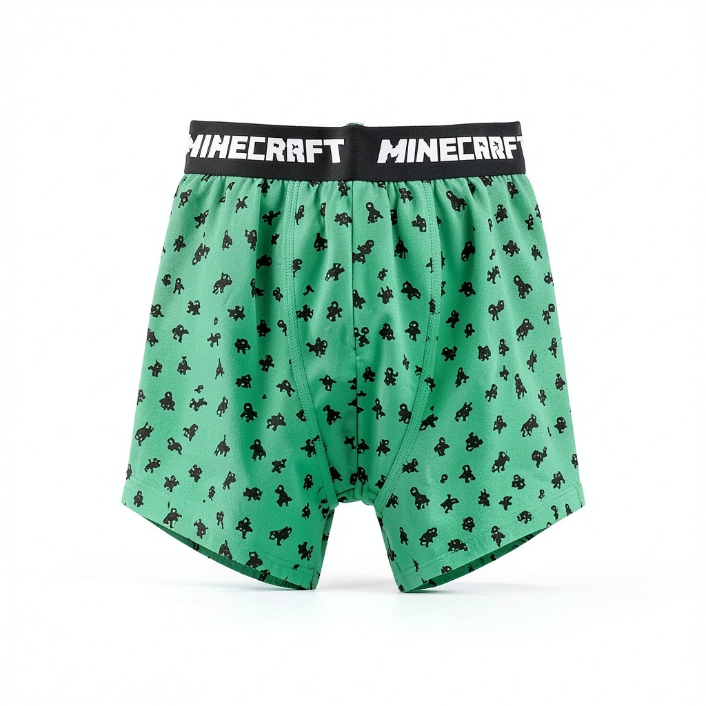 Minecraft boys boxer briefs in colorful designs on a neutral background